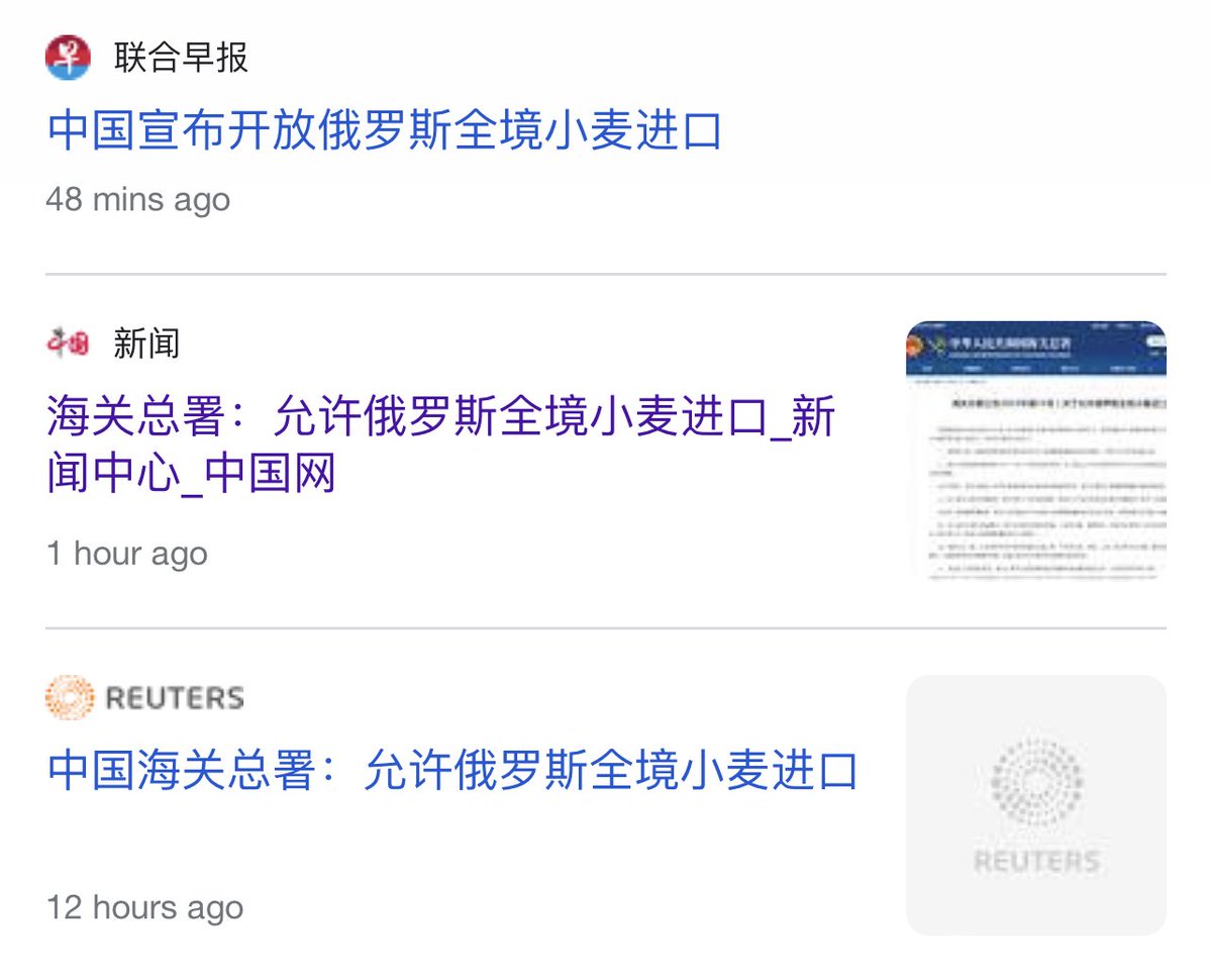 突发新闻:中国突然解除俄罗斯小麦进口禁令,开放全境小麦进口。由于谷物污染问题,中国在1990年代开始禁止从俄罗斯进口谷物。俄罗斯从今天开始受到西方的全面封锁,小麦价格目前也是历史高位。中国从今天开始全面进口俄罗斯高价污染小麦……