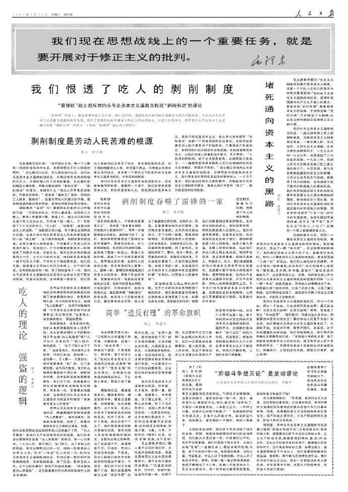 1967年5月12日人民日报《我们恨透了吃人的剥削制度》