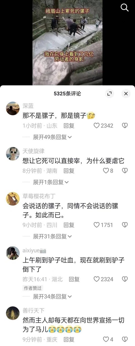 网传:峨眉山那头吐血的骡子终究还是累死了。