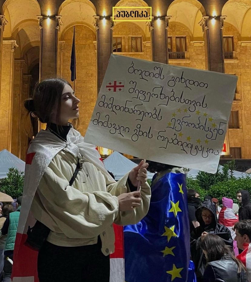 Translation: “We apologize for any inconvenience caused. We’re reconstructing the road towards Europe” 🇬🇪🇪🇺#NotiRussianLaw#TbilisiProtests#GeorgiaProtests📸