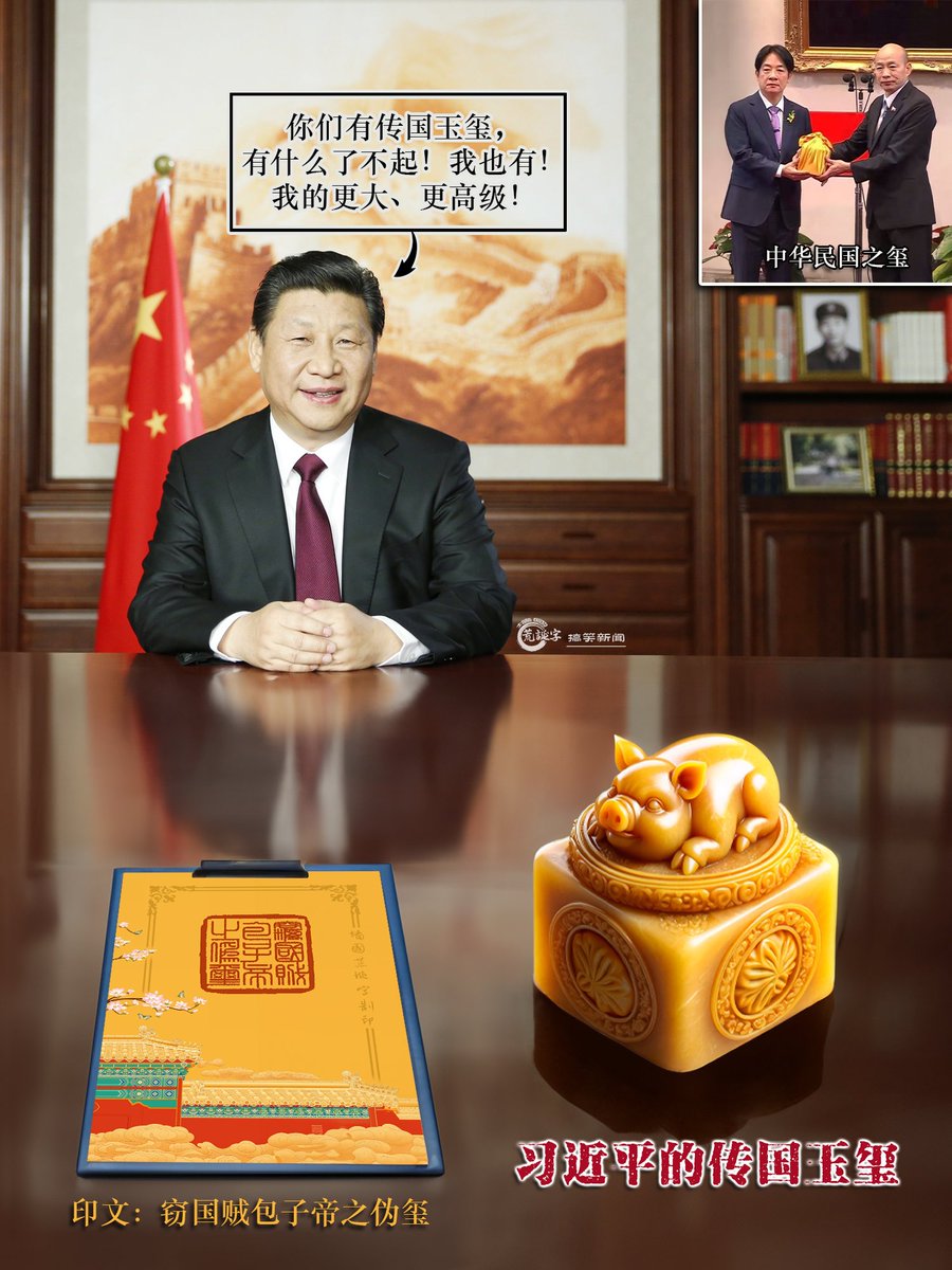 国玺是作为一个正统中国政权立国和政权延续的象征,历朝历代都有。唯有中共这个窃国政权没有!