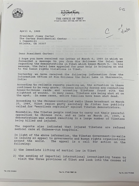 You often find the best archival material in the most surprising places. Jimmy Carter gave copies of his correspondence with the Chinese leadership and the Dalai Lama to Mike Oksenberg, and those materials have ended up at Stanford's Hoover Archives