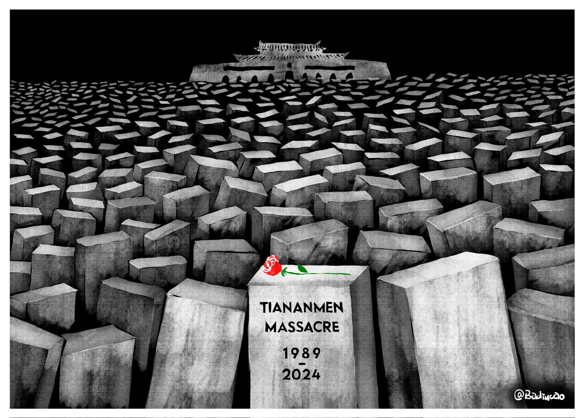 Cartoon for the 35th anniversary of #Tiananmenmassacre with &在澳洲报纸 和 发表纪六四35周年漫画#天安门大屠杀#八九六四#六四三十五