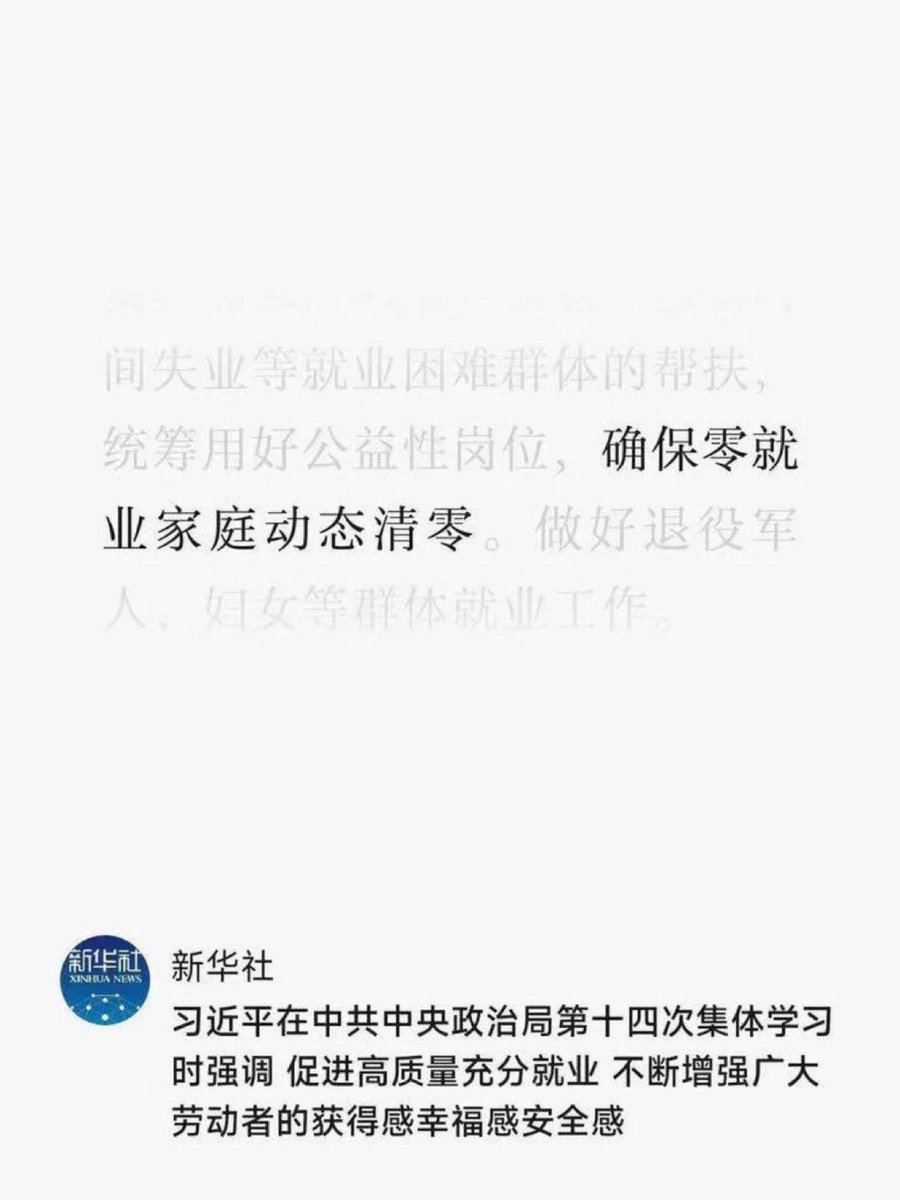 习近平在中共中央政治局第十四次集体学习时强调要确保零就业家庭动态清零不知道这个清零要怎么完成?整个就业码?不就业就不给回小区?