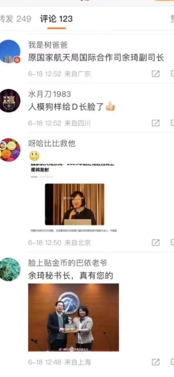 这么快被人搜索到了她的背景:国防科工局系统工程一司原副司长余琦。