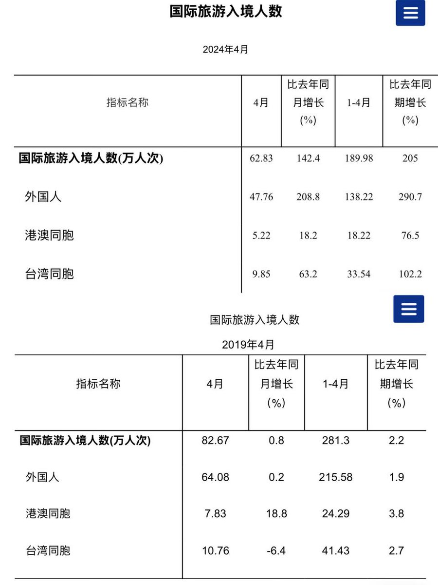 尽管中国正向多个国家推行单方面免签政策,而且2024年国际入境游客已较去年同比增长205%,但仍无法回到2019年水平。2024年1-4月国际入境游客总数仅189.98万人次,较2019年同期281.3万人次减少近100万人次。国际社会对中国逐渐失去兴趣,政治仍是最关键影响因素。