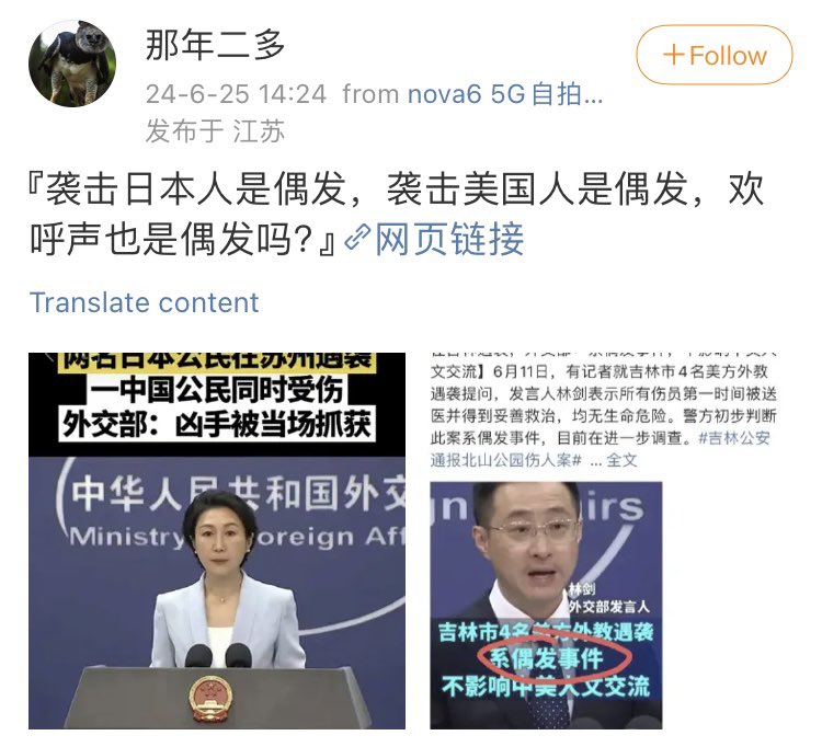 “袭击日本人是偶发,袭击美国人是偶发,欢呼声也是偶发吗?”