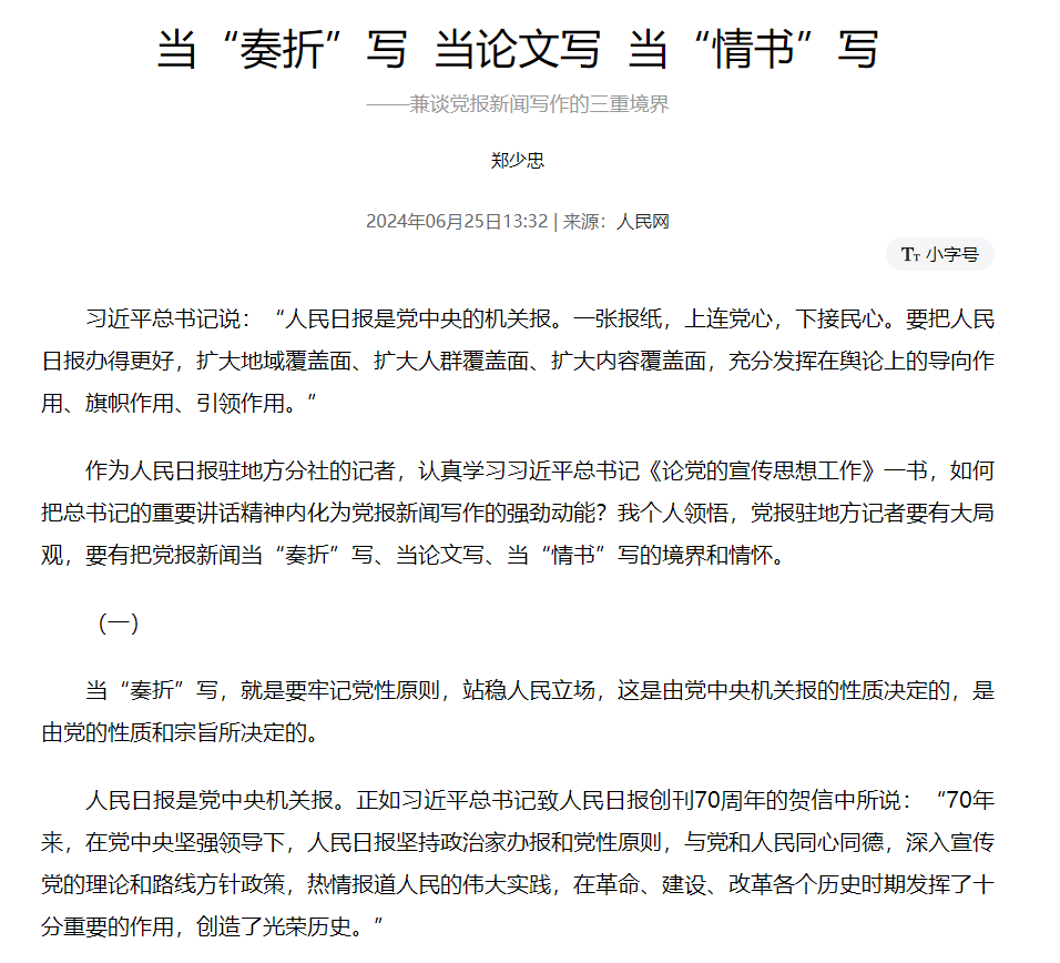 郑少忠:党报新闻写作的三重境界:当奏折写,当论文写,当情书写。