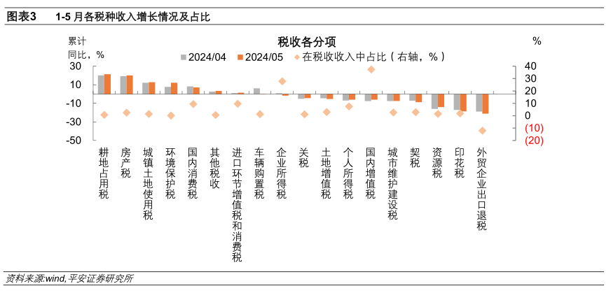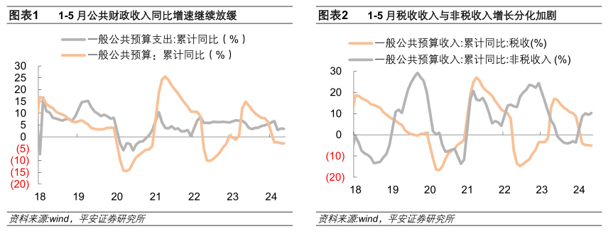 1-5月,全国税收收入同比下降5.1%,而1-4月的是下降4.9%,5月份的税收跌幅在继续扩大。