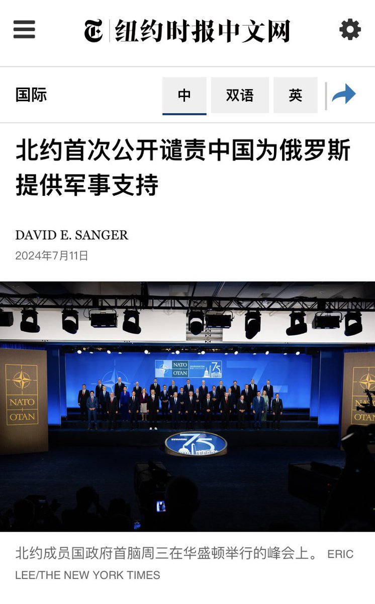 北约峰会谴责北京成为“俄罗斯对乌克兰战争的决定性助推者”,要求中国停止向俄罗斯运送“武器部件”和其他对重建俄罗斯军队至关重要的技术。与此同时,其发布的联合声明还指责中国针对美国和欧洲的“恶意网络和混合活动,包括虚假信息”。