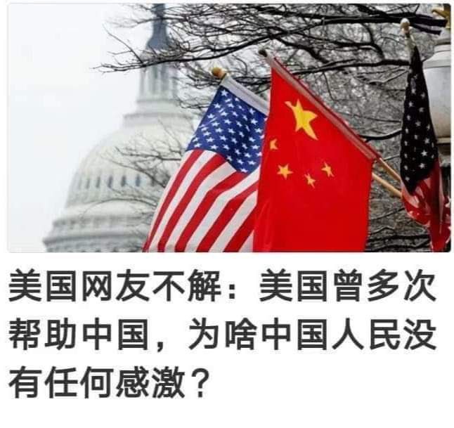 你需要大學, 人家給了你清華;你需要醫療, 人家給了你協和;你需要抗日, 人家派來飛虎隊,你需要反蘇, 人家給你站台;蘇聯核威脅, 人家用核武器瞄準蘇聯;你需要貿易, 人家讓你加入WTO;你說你是發展中國家, 人家給你最惠國待遇;你需要人才, 人家讓你派遣大量留學生;你需要經濟,