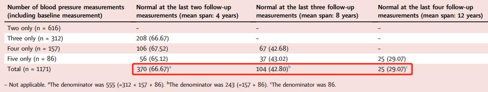 初步分析表明,不吸烟、戒酒、在随访期间达到正常BMI等因素,可能有助于逆转高血压。