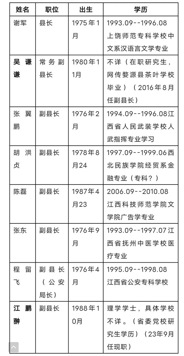 万年县政府学历表,没有一个出自像样的大学,都是专科生,智商堪忧。
