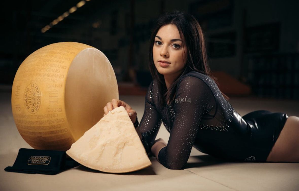 Olympic gymnast Giorgia Villa is sponsored by parmesan and just takes photos with a wheel of cheese
