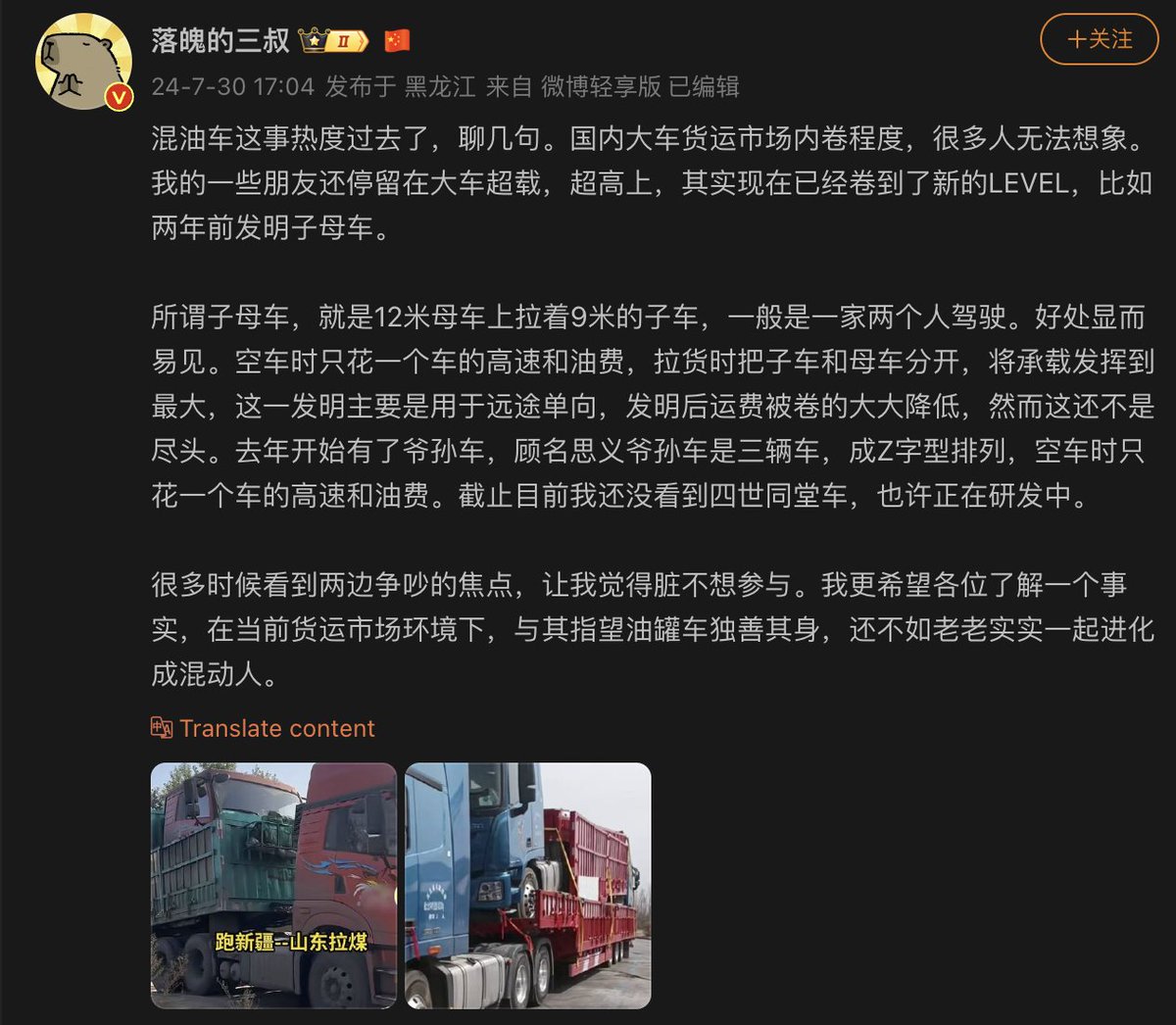 中国大车货运市场内卷程度的标志之一:子母车。