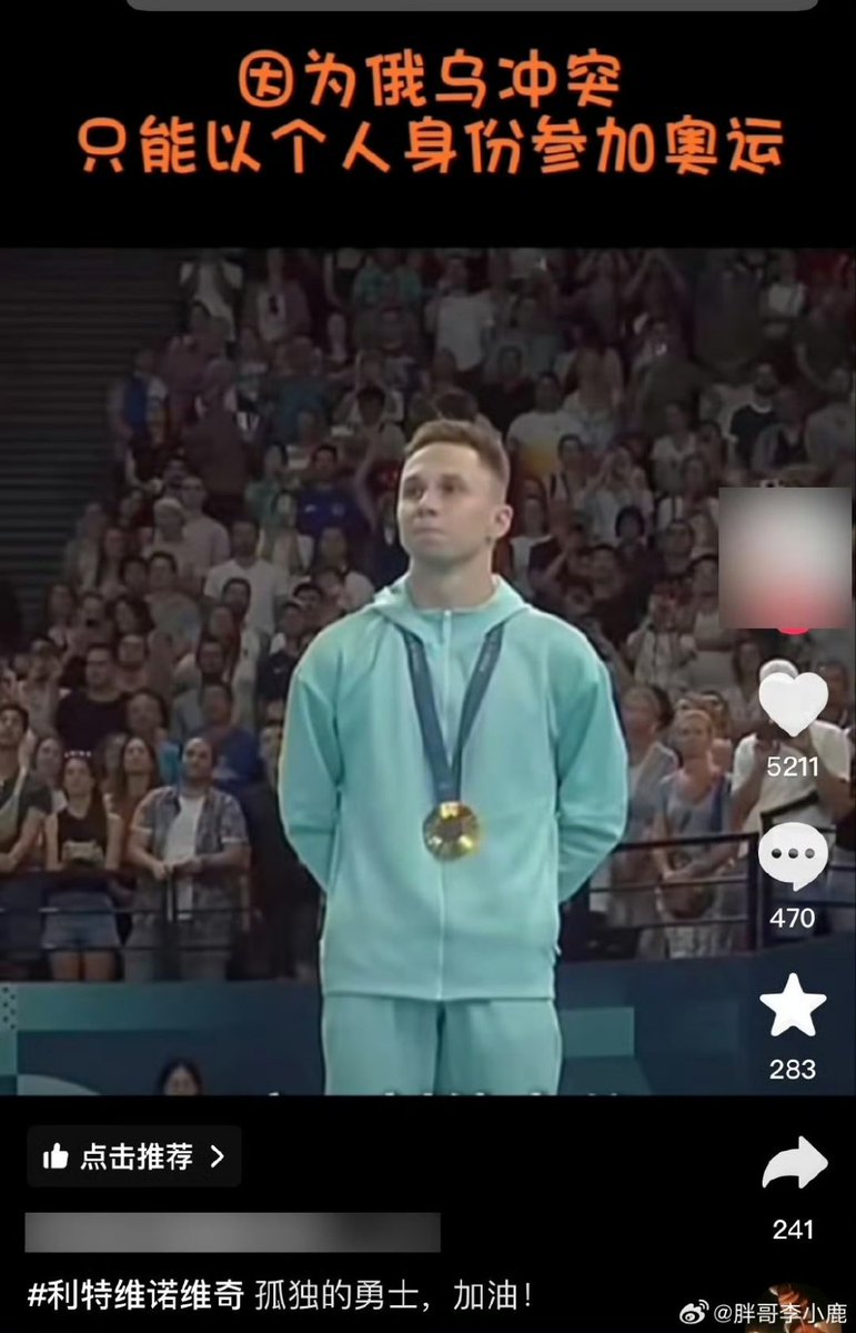 这名奥运运动员原本是白俄罗斯的,他们同俄国一样被要求不得升国旗。不过,这不妨碍墙国人高潮。