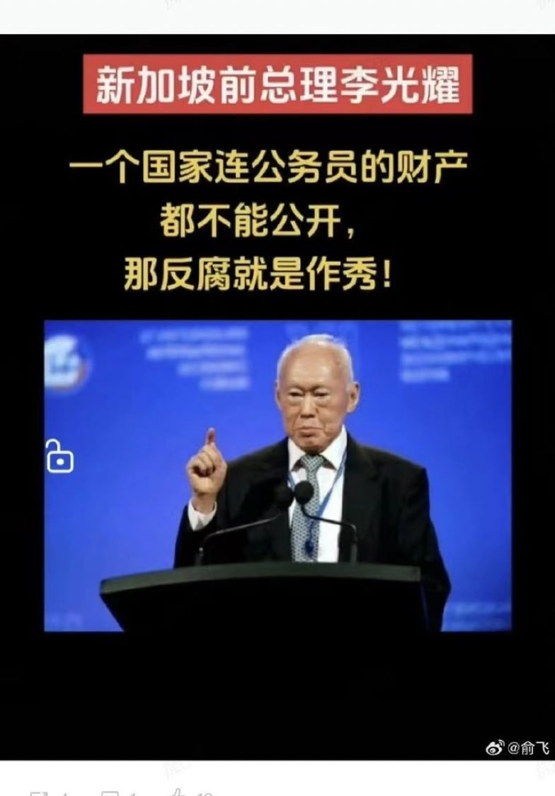 李光耀:一个国家连公务员的财产都不能公开,那反腐就是作秀。