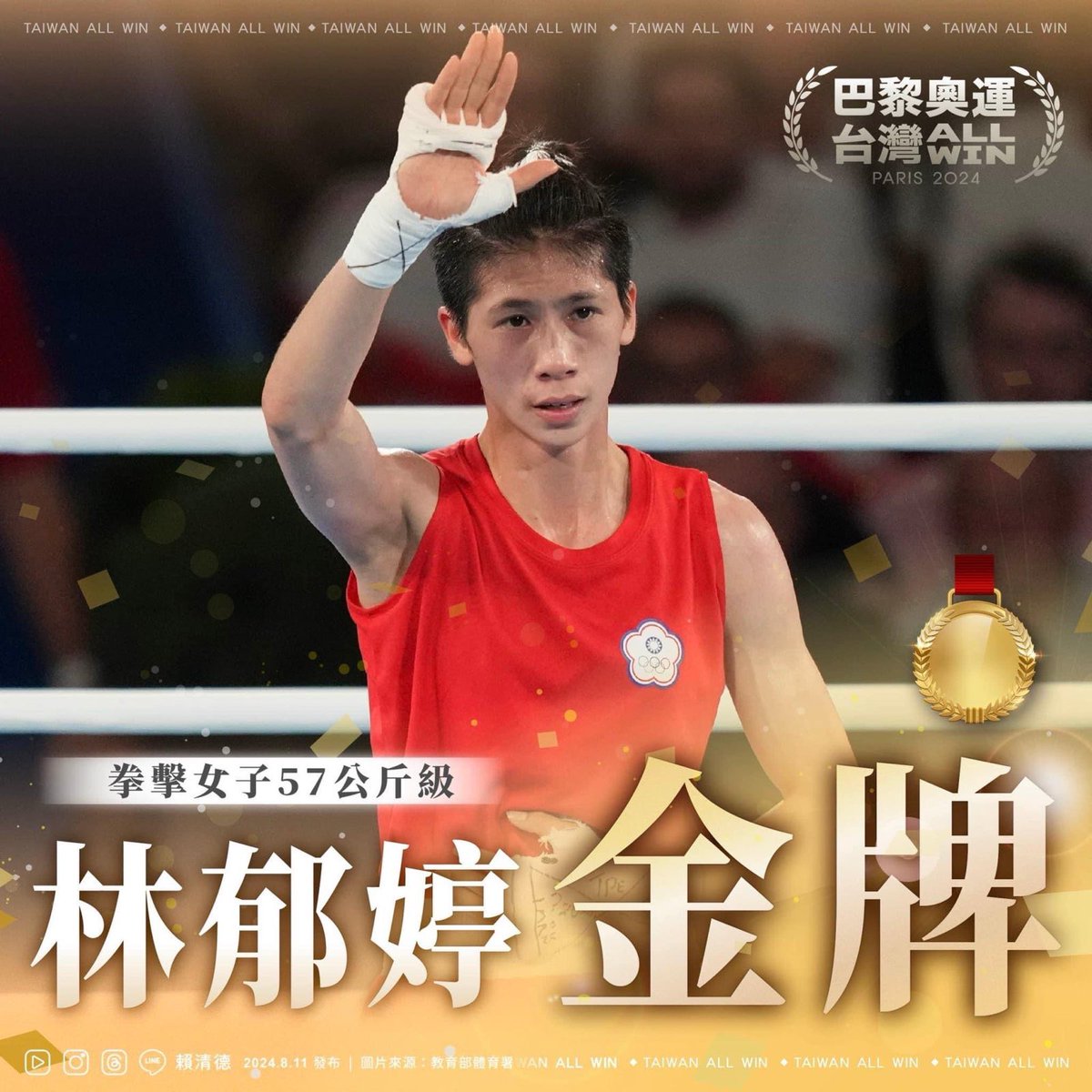 Congratulations to Lin Yu-ting 林郁婷 for winning gold in women's 57kg boxing at #Paris2024! With admirable focus & discipline, she has overcome misinformation & cyberbullying, turning adversity into victory. A daughter of #Taiwan through & through, she’s made our nation proud!