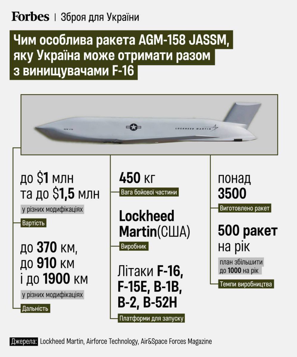 白宮正在考慮向烏克蘭發送遠程 JASSM 巡航導彈 - Politico這將使烏克蘭的F-16飛行員能夠向370公里外的目標發射飛彈。