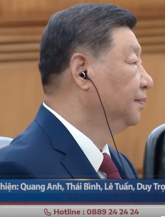 新华社至今不发习近平会见苏林的照片果然有鬼。有网友宣布:会见苏林的习近平是替身! (左图是越南通讯社的视频截图)下巴变短了,上下眼变肥了,鱼尾纹也消失了,耳朵也不像,脖子也变长了!