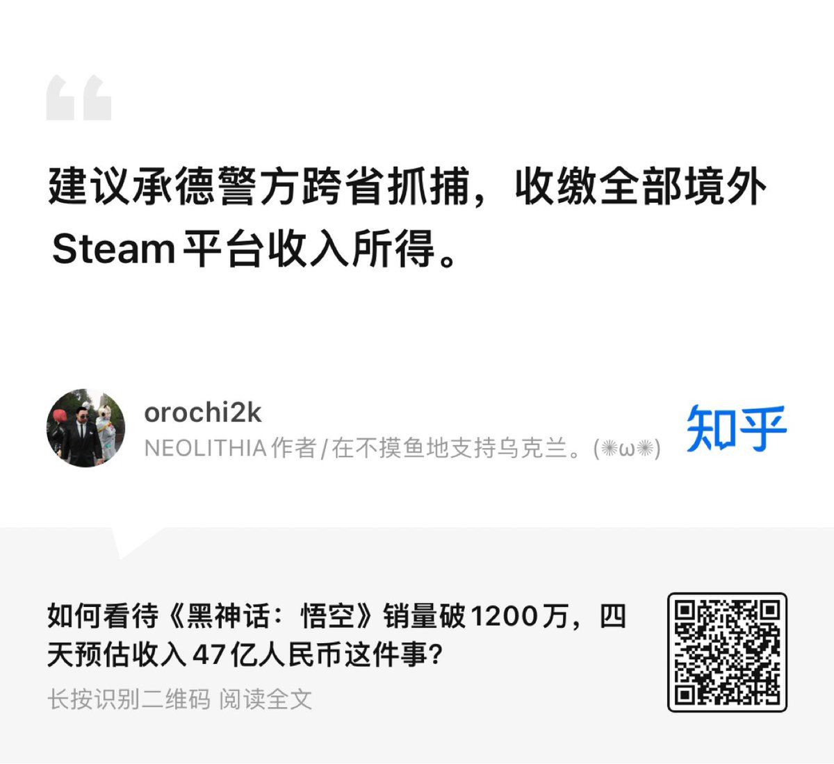 梗图:建议承德警方跨省追捕,收缴黑神话悟空团队全部境外Steam平台收入所得。