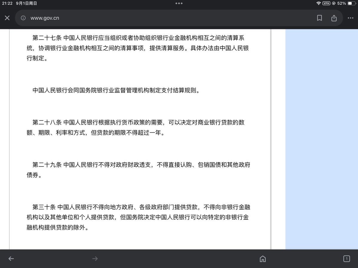 2003年底全国人大修改了1995年版的《中国人民银行法》, 最主要的原因是中国银监会和中国保监会从中国人民银行中分离出去,人民银行不再负责对银行、保险等金融机构监管,专司中央银行职责。人行法不得不进行修改。央行购买国债目前的操作并不违反《人行法》,WSJ大意了。😊