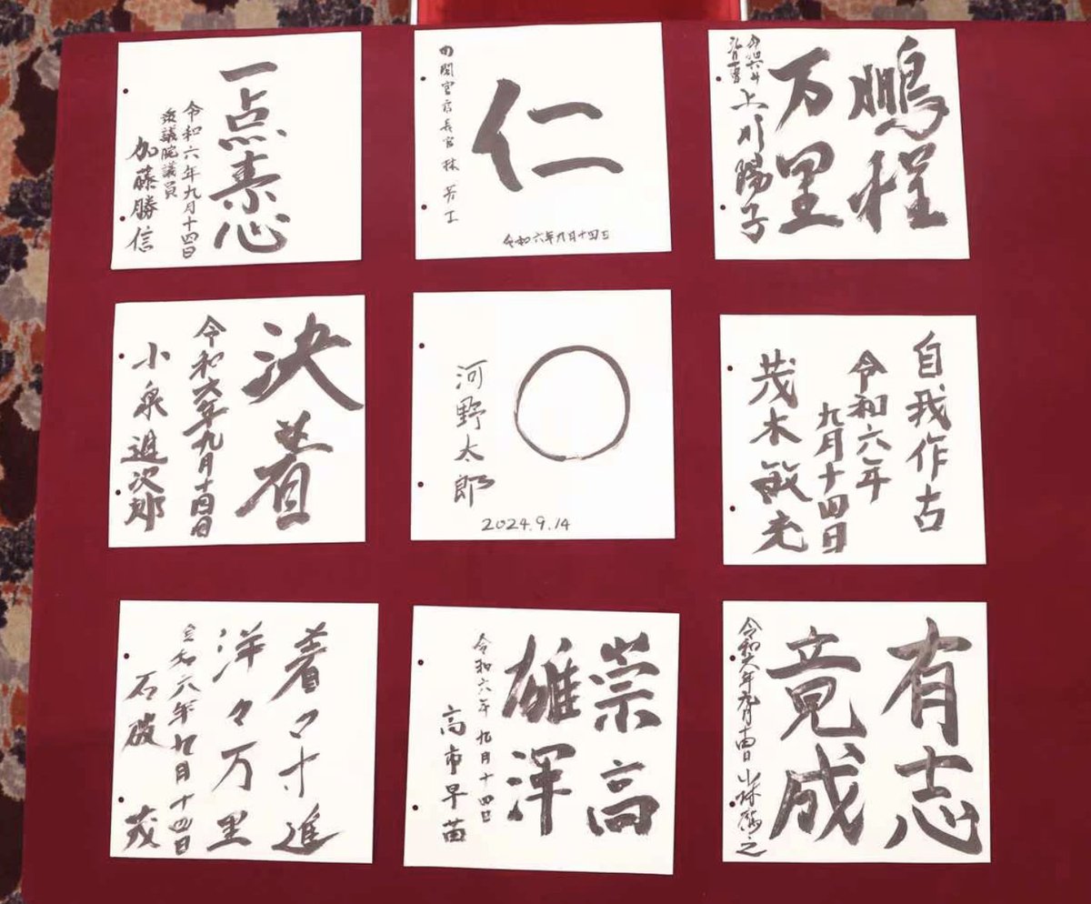 9位自民党总裁候选人(当选的基本就是下任日本首相)的书法,以及安倍晋三的书法。