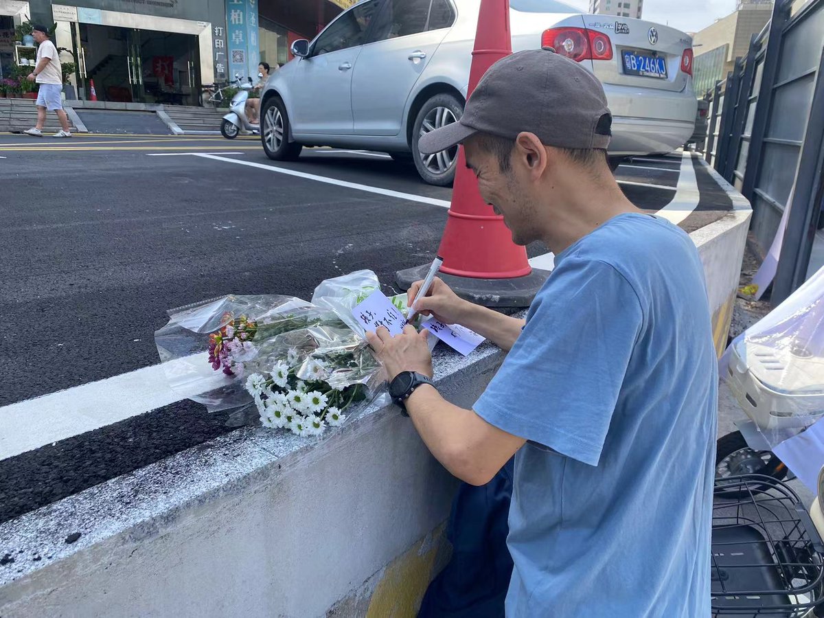 在深圳,日本孩子遇刺地点,不少人陆续前往献花祭奠。但花放下立马被拿进门里。