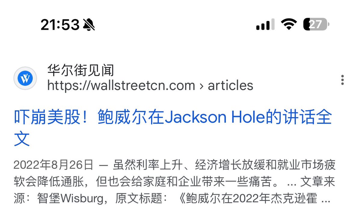 很多人持这种论调,说:“降息利多已经被全面预期并计价了,等到美联储真降息那天,就是利空了。”一个方法,你问问他:“2022年美联储开始加息后,利空落地,市场开始利多了吗?”这是忘了2022年鲍威尔在杰克逊霍尔全球央行年会上的讲话,和这张配图了。