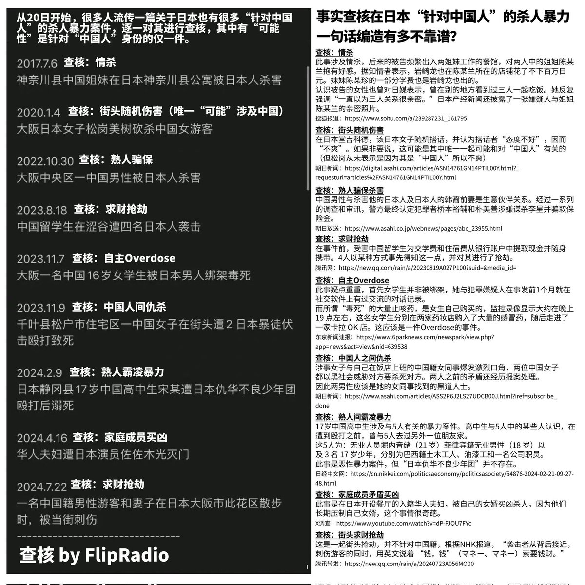 推特上我至少刷到5-10个“大V”转发这个日本针对中国人暴力事件列表。甚至还有人在炒作最近驻日美军基地发生的交通事故,将其包装为美国人杀害日本人。虽然这些言论没有一丁点脑部进化的痕迹,但点赞还能有上千监狱上网,确实奇葩