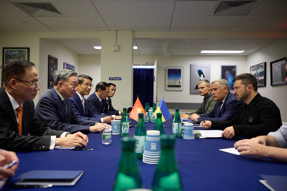 澤倫斯基在紐約會見越南國家主席​​蘇林澤倫斯基說:“我們討論了雙邊關係的發展和兩國之間貿易額的增加,特別是在農業領域,感謝你們提供的人道主義支持以及參與烏克蘭戰後恢復的意願。”