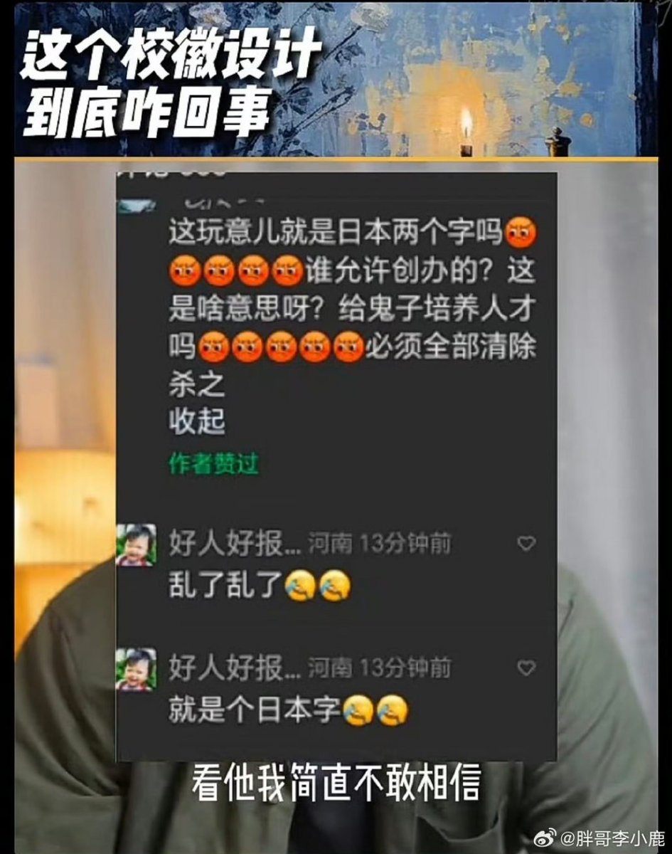 有网友认为,云南一中学的校徽包含“日本”两字。