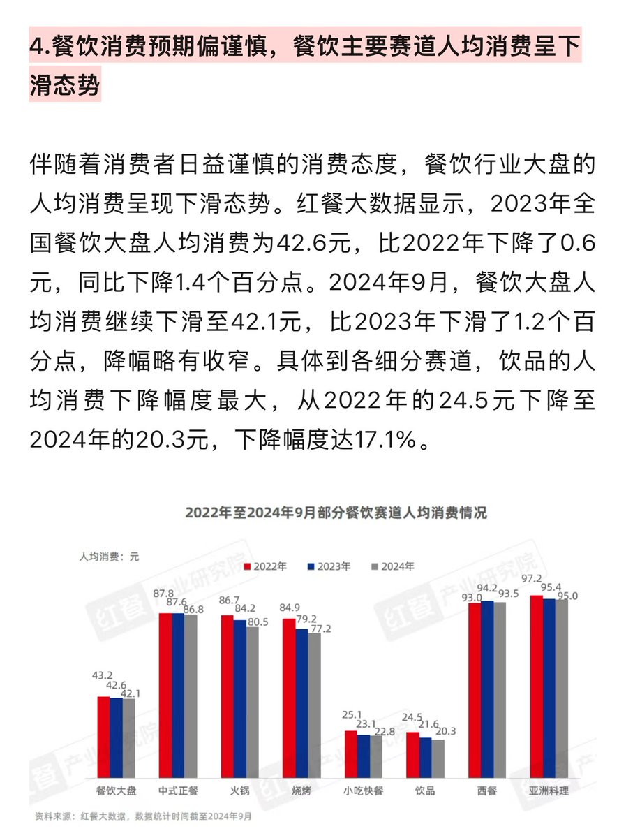近日发布的《中国餐饮品牌力白皮书2024》显示,今年1-8月,全国餐饮相关企业注册量较去年同期减少44.4万家,而同期餐饮相关企业注销、吊销的数辆超过160万家,超过23年全年注销、吊销量的九成。不仅如此,餐饮主要赛道人均消费也呈现下滑趋势。
