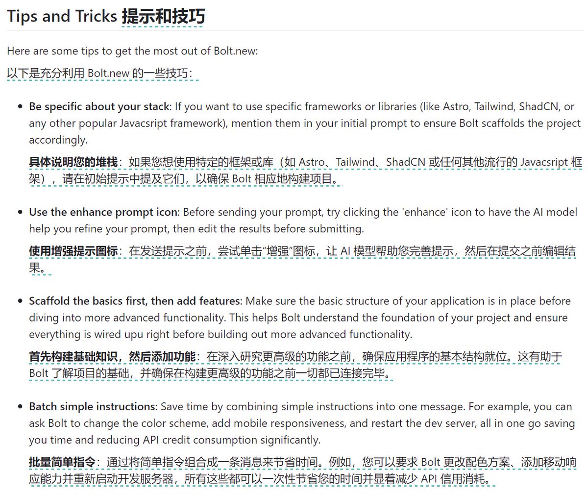 AI 代码工具 Bolt new 的项目居然是开源的。想做类似产品的可以参考这个项目。里面还写了使用 Bolt 的技巧。项目地址: