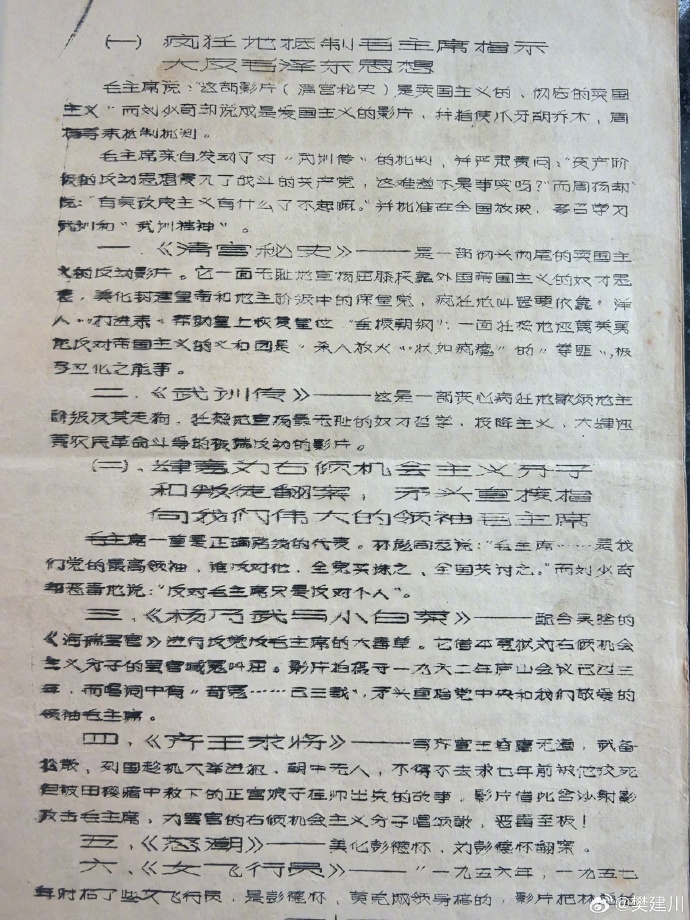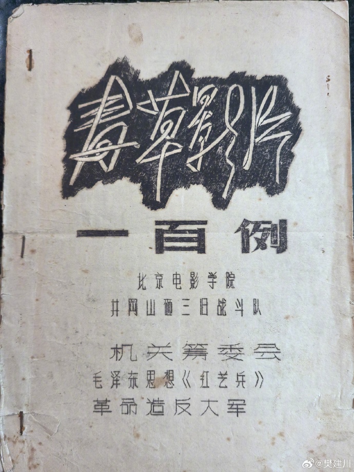 1967年油印本“毒草电影100例”等到北影井冈山砸三旧联合上影红