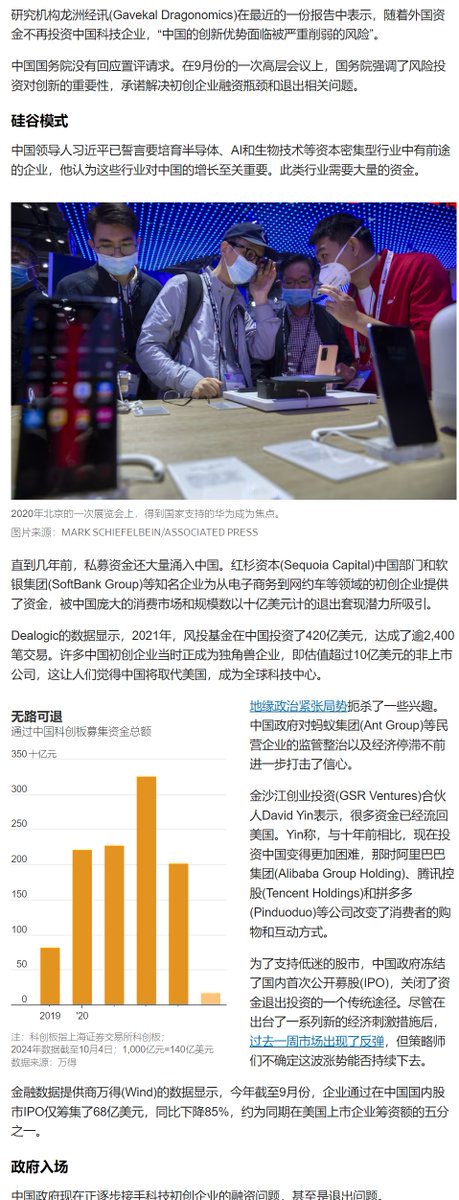10月7日,华尔街日报发长文分析称,流向中国初创企业的风投资金锐减,正促使中国政府更多地参与培育本国科技行业,但从长远来看,这种战略可能不利于中国在技术上追赶西方。