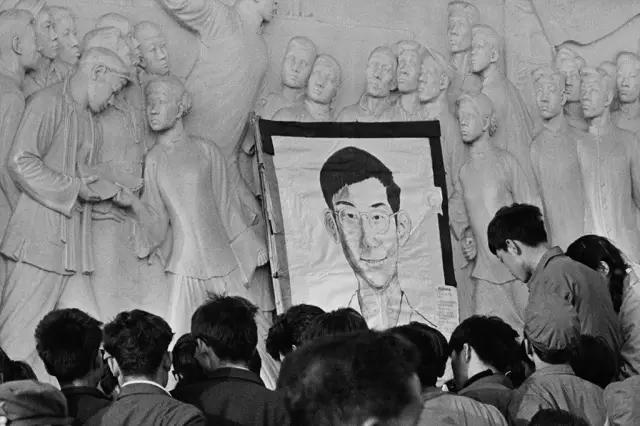 1978年1月,天安门广场纪念碑下,悼念遇罗克。李晓斌摄影。