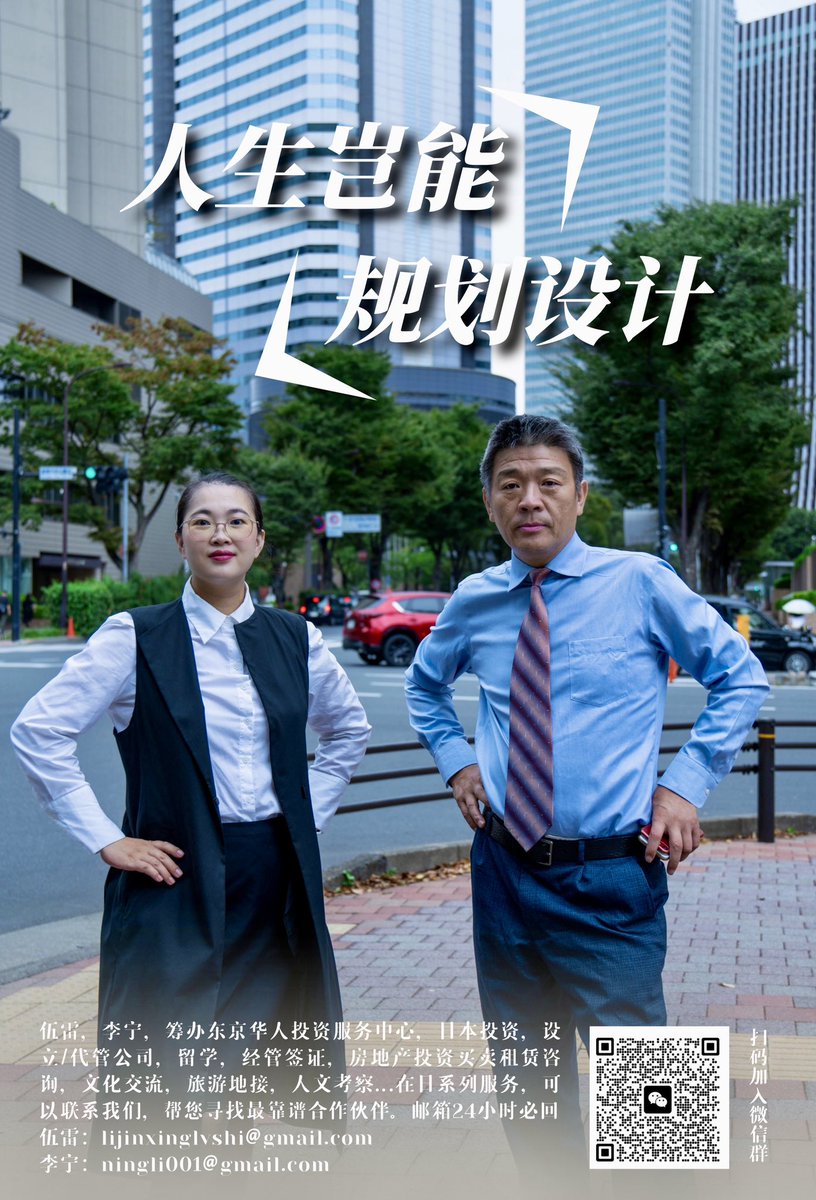 我和李宁的商业广告尝试,目标客户是对日本有兴趣的朋友。我们初步建立了自己的核心团队,我们的口号是绝不骗人,我们希望建立一个华人赴日服务综合接待。希望朋友们介绍朋友们来体验。