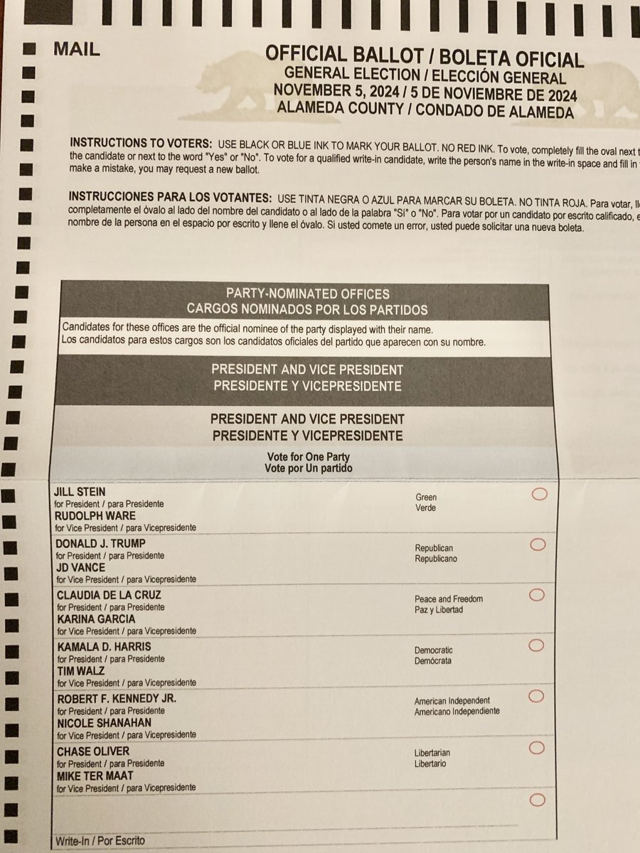 10/10/24: 给加州的选民提个醒,提前投票已经于星期一(10月7号)开始,邮寄选票应该在今明两天送到登记选民的住址