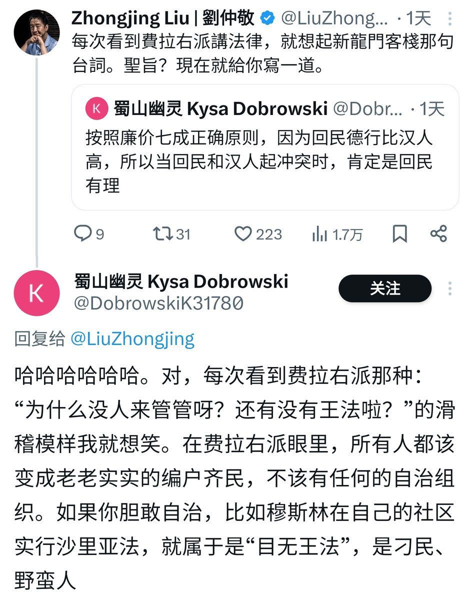 费拉右头子刘阿姨和姨粪们为何抓住一个绿教猛舔?因为进步四天王里另外三个LGBT、黑命貴和女权实在难以用它那姨学史观解构啊,好在还有个绿教能当救命稻草。我劝姨们就别装模作样猎巫费拉右了,趁早出柜挂上彩虹旗和咱左小将贴起来,推上那几个药娘窝不是挺“自治”的吗,可以当大蜀建国的基石啊。