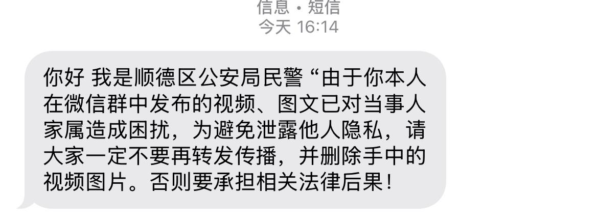 当地警察开始封锁消息,要求大家删除手中图片视频,并且不要再转发传播。