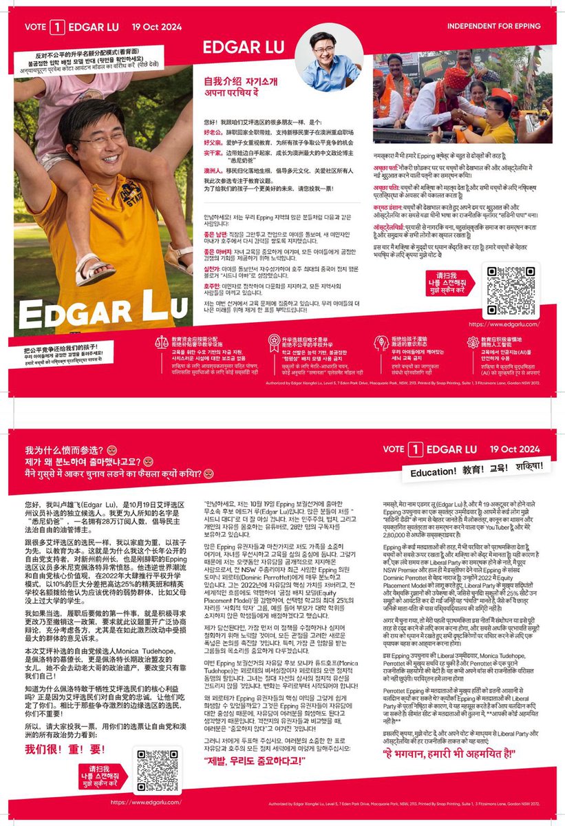 今天在有限的时间里成功说服了一个印尼家庭,两个印度家庭,两个韩国家庭和一个巴基斯坦大叔投我票但是我和我的志愿者也遇到了好几位简中华裔选民说“anyone but Chinese”,包括一个家庭忙着发传单没来得及细谈,明天希望可以找一个聊聊好带劲✌️