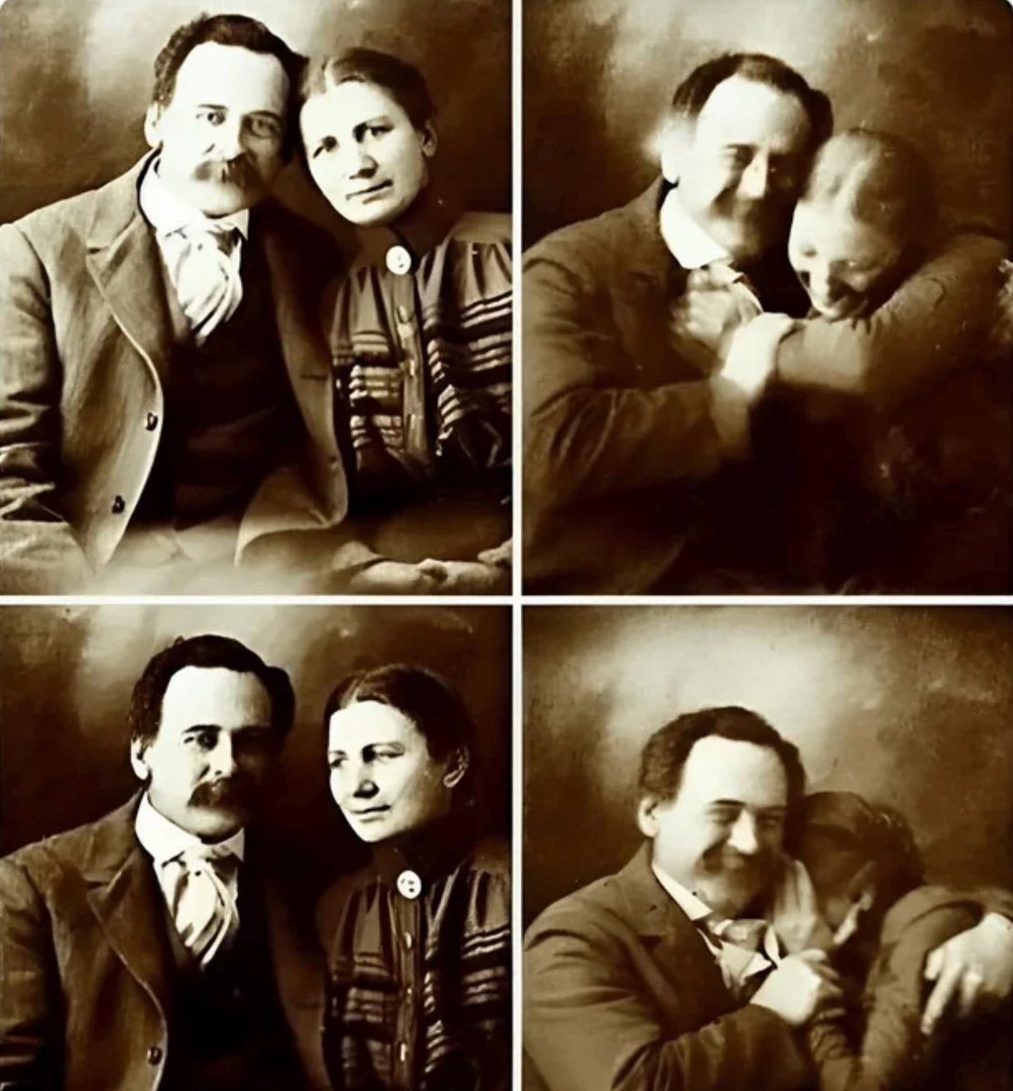 Couple trying not to laugh during their portrait, 1883 😂