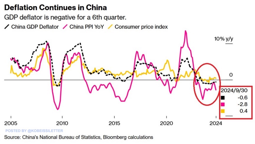 Prices in China fell for the sixth consecutive quarter in Q3 2024, the longest streak since 1999.