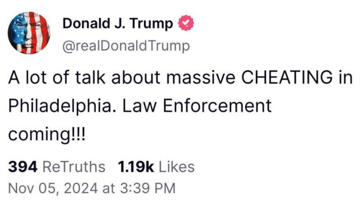 Trump thinks he's losing Pennsylvania...Stay in line Philly!