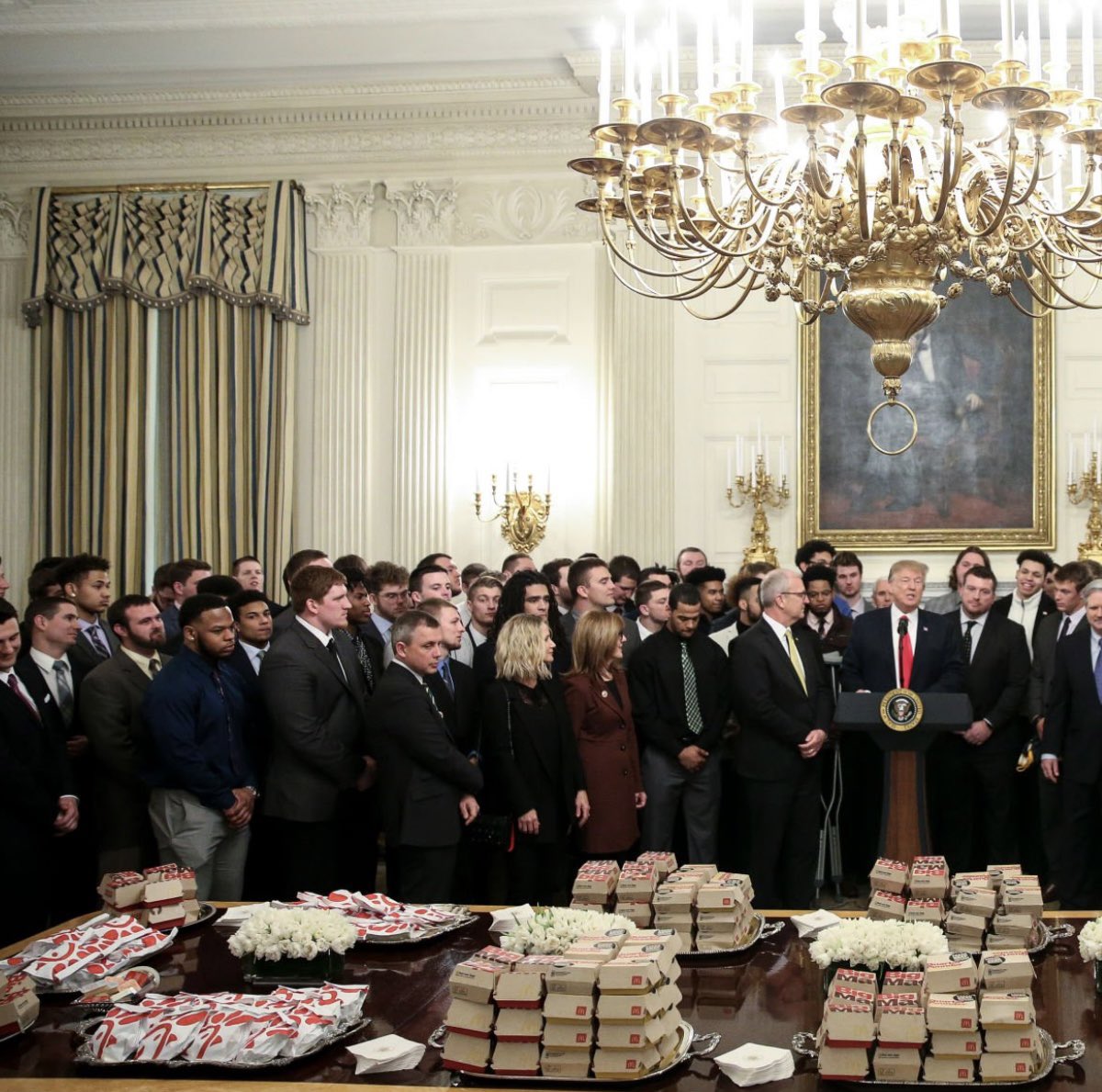 據說川普表示以後美國的國宴一律以 hamburger 奉客 ,管你是誰都吃一客成本不超過15美金的漢堡包!我覺得挺棒的!美國納稅人的辛苦錢,不是用來揮霍,搞什麼山水雕花大宴擺闊,然後路有凍死骨!