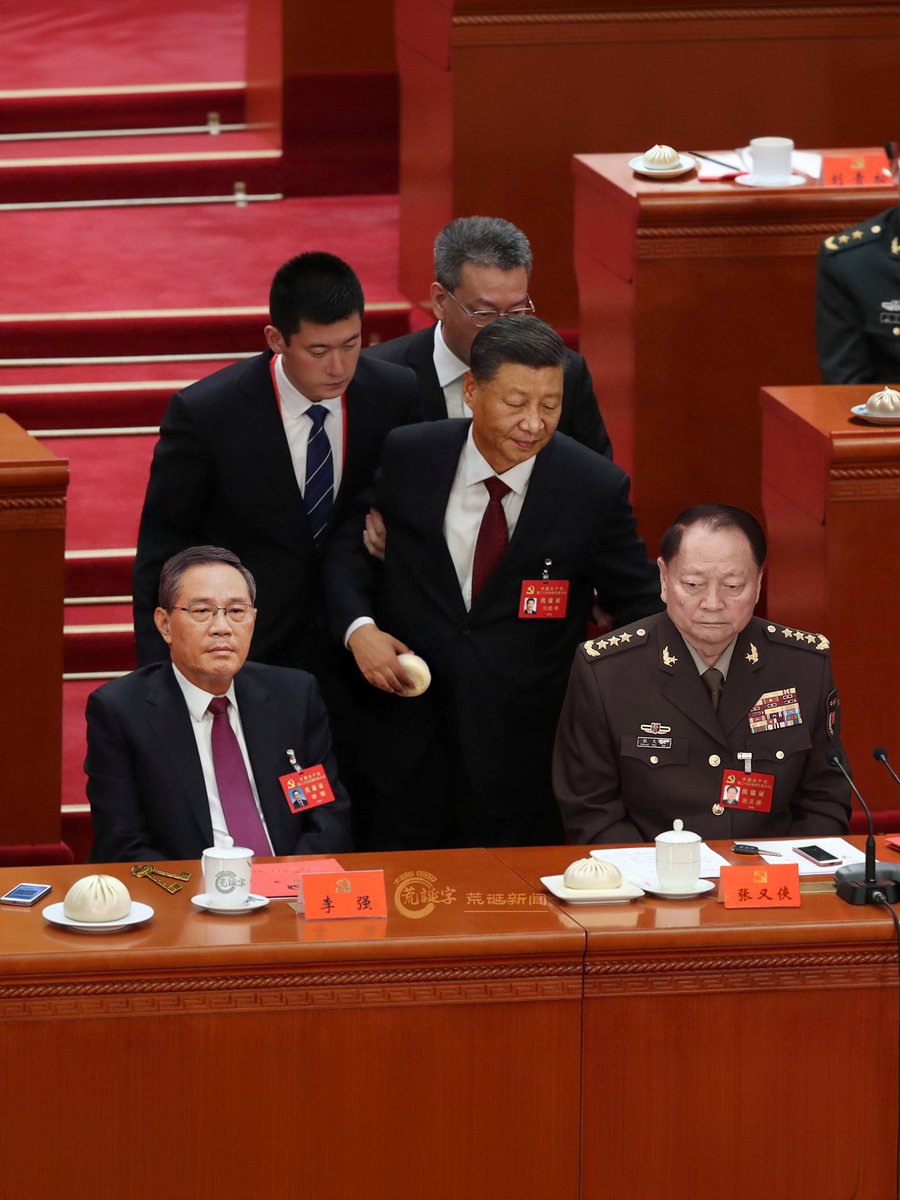 看到有推友还在转本推7月23日发的那张图,那我把那张图的细节完善了一下再发出来!原来的图有两处细节有点问题:一是习包子的手稍微有点小,有点不协调;二是李强的名字牌下面的倒影多了个字。#习近平 #李强 #张又侠 #讽刺 #搞笑 #漫画 #梗图