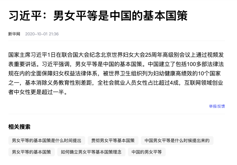 冷知识:男女平等一直是中国的基本国策。习近平曾在联合国大会上发表讲话:强调男女平等是中国的基本国策。并且百度搜索可知,各地仍然在积极宣传男女平等。