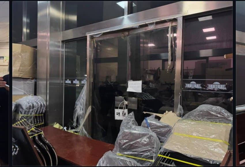 Photographs of barricades bulit by National Assembly members and staff in a matter of minutes