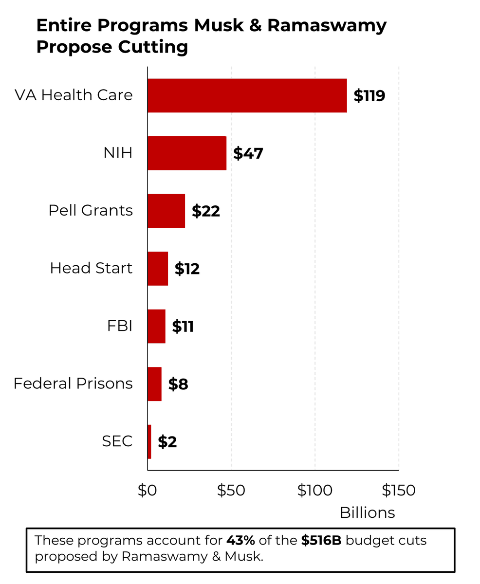 马斯克的政府效率部门给出的第一个预算裁剪方案。老兵医保1190亿美元排第一,然后是国家医学卫生院470亿派第二。接着是监狱和FBI,金融监管等。和大部分人此前的预想肯定有所不同。为什么呢?因为联邦公务员总共200万人,工资+退休保障+奖金可能也就3000亿出头,加上周边设施成本,可能6000亿出头。